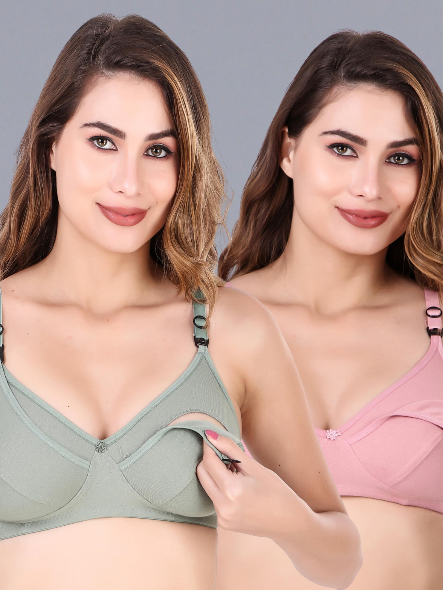 Women Cotton Full Cup Non Padded Maternity Breastfeeding Mother /Nursing Bra/Maternity Bra in combo of 2 -B Cup
